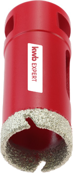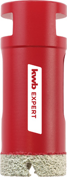 Der kwb Fliesenbohrer wurde für den Trockenschnitt ohne Wasserkühlung entwickelt. Durch die 7-mm-Bestreuung mit hochwertigen IndustrieDiamanten eignet er sich für härteste Materialien wie Fliesen, Feinsteinzeug und Dachziegel. Der durchgängige Diamantbesatz mit stark abrasiven Eigenschaften und die integrierte, kühlende Paraffinfüllung der kleinen Durchmesser bis 14 mm sorgt für eine hohe Standzeit. Er passt auf handelsübliche M14 Winkelschleifer mit einer Umfangsgeschwindigkeit von 80 m/s.
