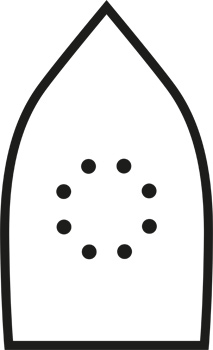 Triangular sanding discs for wood and metall, aluminium oxide coated, 107 x 175 mm, resin bonded, strong backing material, with hook and loop backing, punched, for delta/triangular sanders, for sanding metal and wood, paint, varnish, filler, stone and plastics.