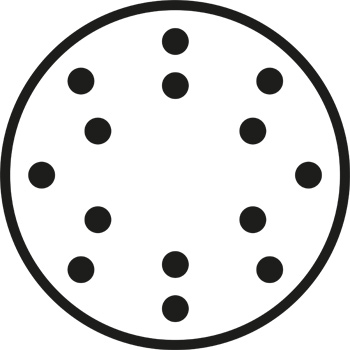 Abrasive sanding discs Ø 150 mm, for wood and metal, aluminium oxide abrasive coated, phenolic resin bonded, strong backing, with hook-and-loop fabric backing, punched, for use with random orbit sanders, for sanding metal and wood, paint, varnish, filler, stone and plastics.